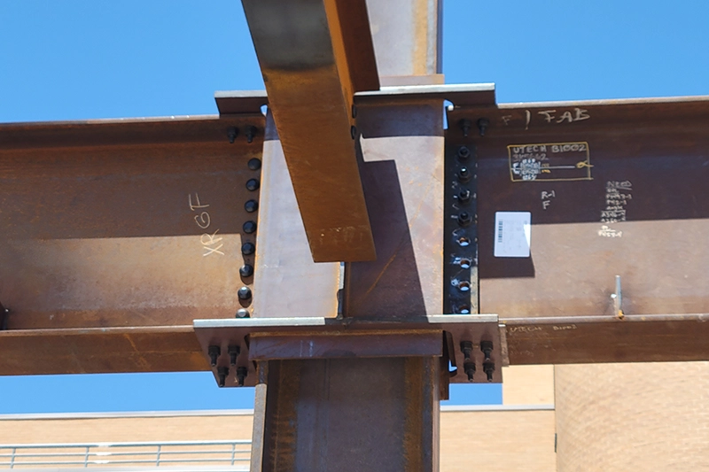 Moment frames are the most versatile system for building programming allowing for open sightlines and minimized restrictions on space utilization since diagonal braces or structural walls are eliminated. With DuraFuse Frames, the cost of a steel moment frame is reduced compared to other moment connections. This economy is achieved by minimizing steel tonnage, simplifying fabrication and shortening the erection schedule. DuraFuse Frames field-bolted moment connections are uniquely designed to accomplish all these goals as they were developed by engineers collaborating with steel fabricators and erectors. With DuraFuse connections the depth and weight of the beams and columns are optimized. The design optimization considers both the steel tonnage and the cost of fabrication and erection such that the overall construction cost is reduced. The connection detailing is light and efficient minimizing conflicts with other building components (architectural, mechanical, plumbing, …). When the connection is at the perimeter of the building, our plates do extend beyond the column edge. We coordinate this early in design and those plates can be used for supporting and connecting to other components such as the façade or decking.